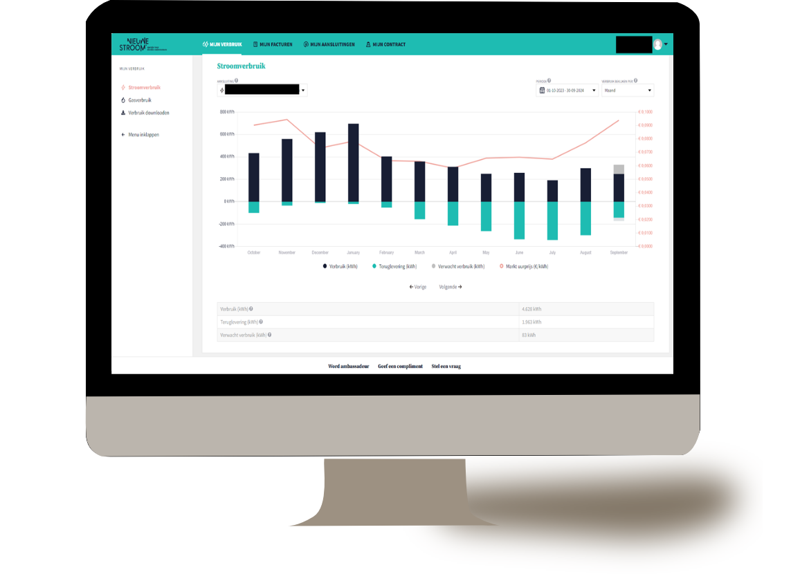 Onze partner NieuweStroom zal maandelijks een energienota sturen. Deze nota bestaat uit twee delen:
